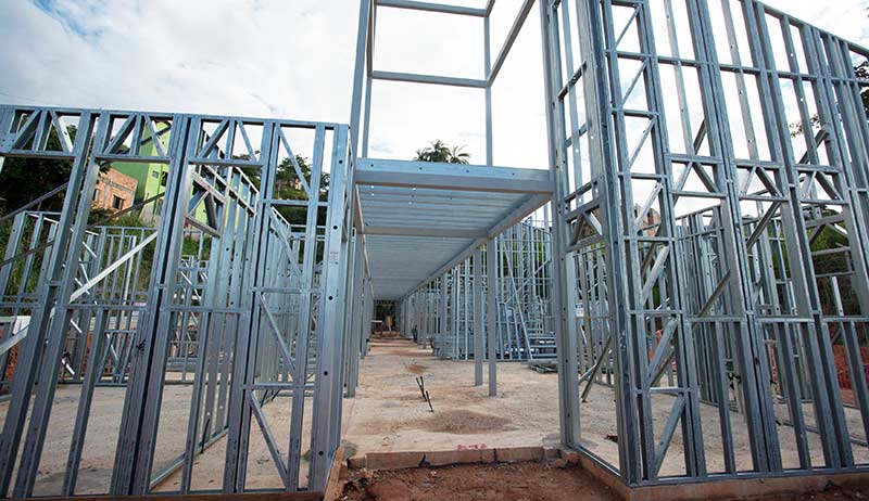 Já falamos sobre o Steel Frame em nosso blog outras vezes, mas é importante retomar seu conceito para entender como ele pode ser útil na construção de unidades habitacionais. O Steel Frame é um termo em inglês que significa algo como “estrutura de aço” e é caracterizado justamente por sua tradução. É um processo pelo qual sua estrutura em aço é composta por diversos elementos ligados uns aos outros, de modo que o conjunto resultante dê forma e resistência às cargas da edificação. O Ligth Steel Frame é um sistema estrutural formado por perfis de aço galvanizado a frio e também é popularmente conhecido como “construção a seco”.