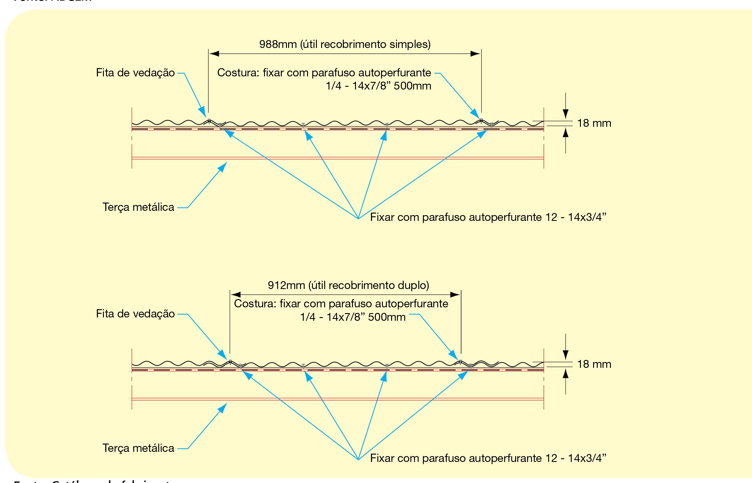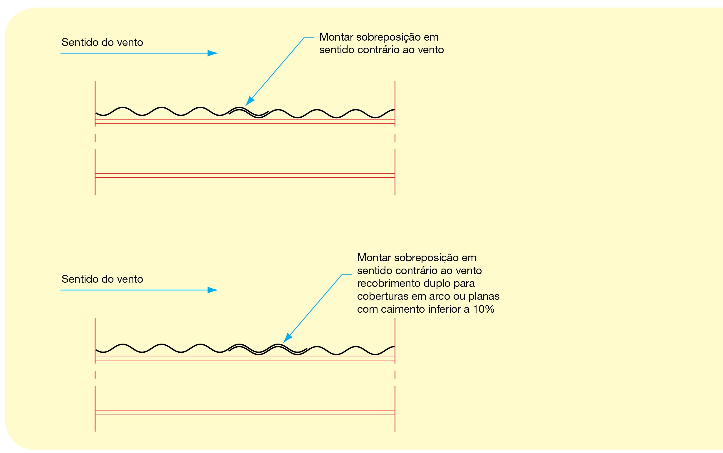 sobreposição das telhas, que deve ser montada no sentido contrário ao vento.