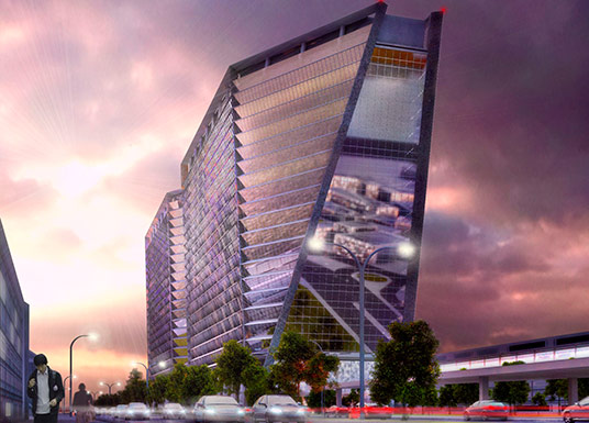 Mas a participação dos pilares de aço inclinados que mais chamam a atenção realmente está nos projetos arquitetônicos. É praticamente impossível passar em frente a uma dessas belezas de concreto e não se impressionar com a ousadia dos arquitetos. São diversos projetos fantásticos, concluídos ou em andamento, que saltam aos nossos olhos. O Pátio da Marítima, no Rio de Janeiro, é um dos mais impressionantes do complexo do revitalizado Porto Maravilha. As diferenças entre os pavimentos sucessivos e pilares inclinados, formam uma estrutura fora do comum, onde há inclinação de até 21 m em relação à base.